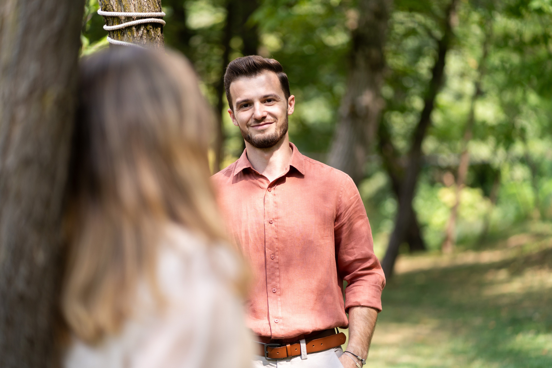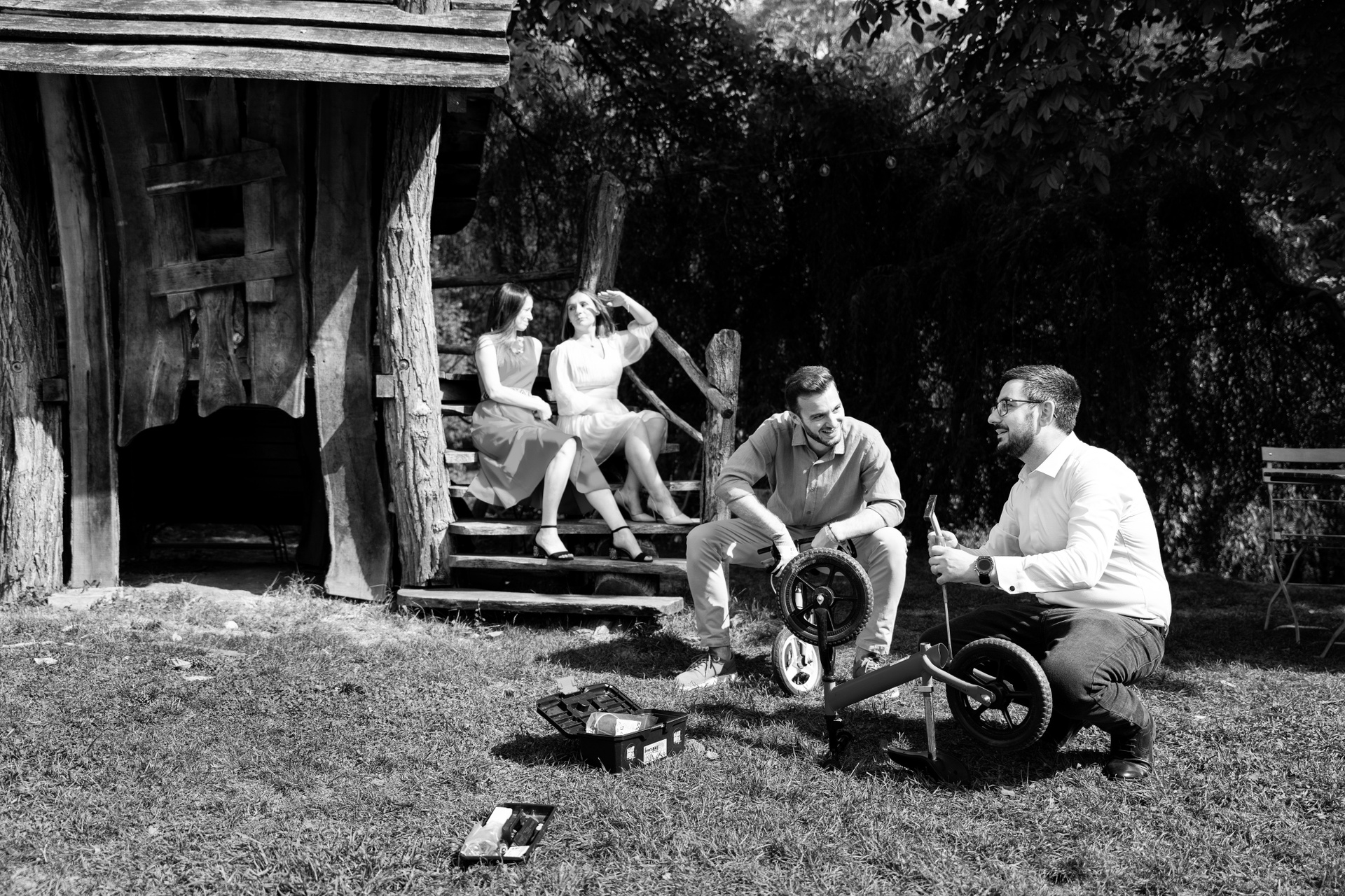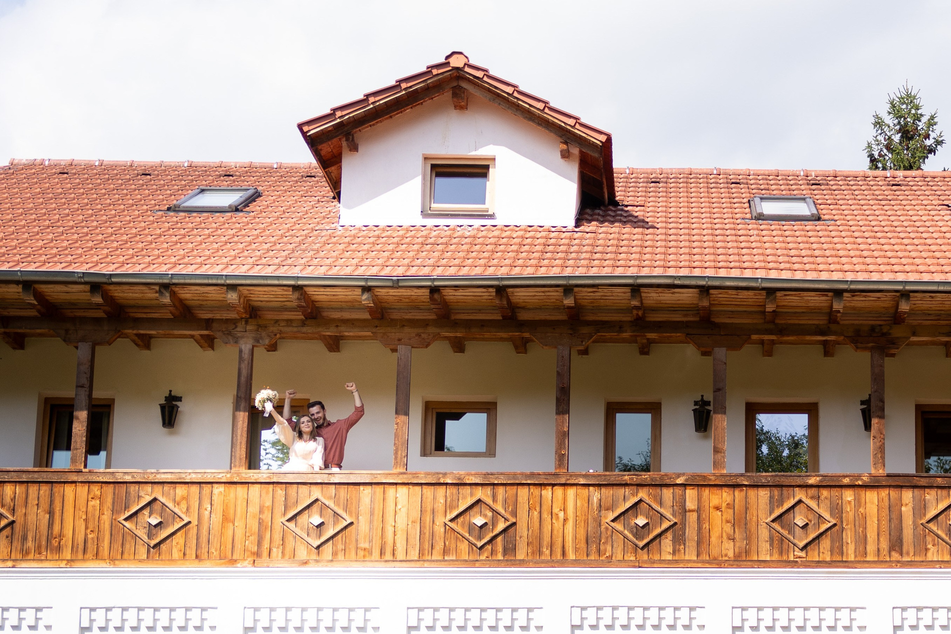 Un pod elegant, ce traversa râul, a devenit locul preferat pentru sesiunea foto a mirilor. Razele soarelui se reflectau jucăuș în apa curgătoare, creând un decor magic pentru fiecare instantaneu surprins. Cu zâmbete largi și ochii strălucitori, Alexandra și Alexandru și-au promis iubire eternă, înconjurați de natura care parcă vibra la unison cu bucuria lor.