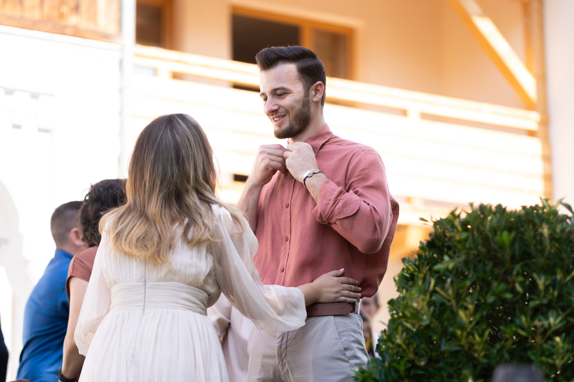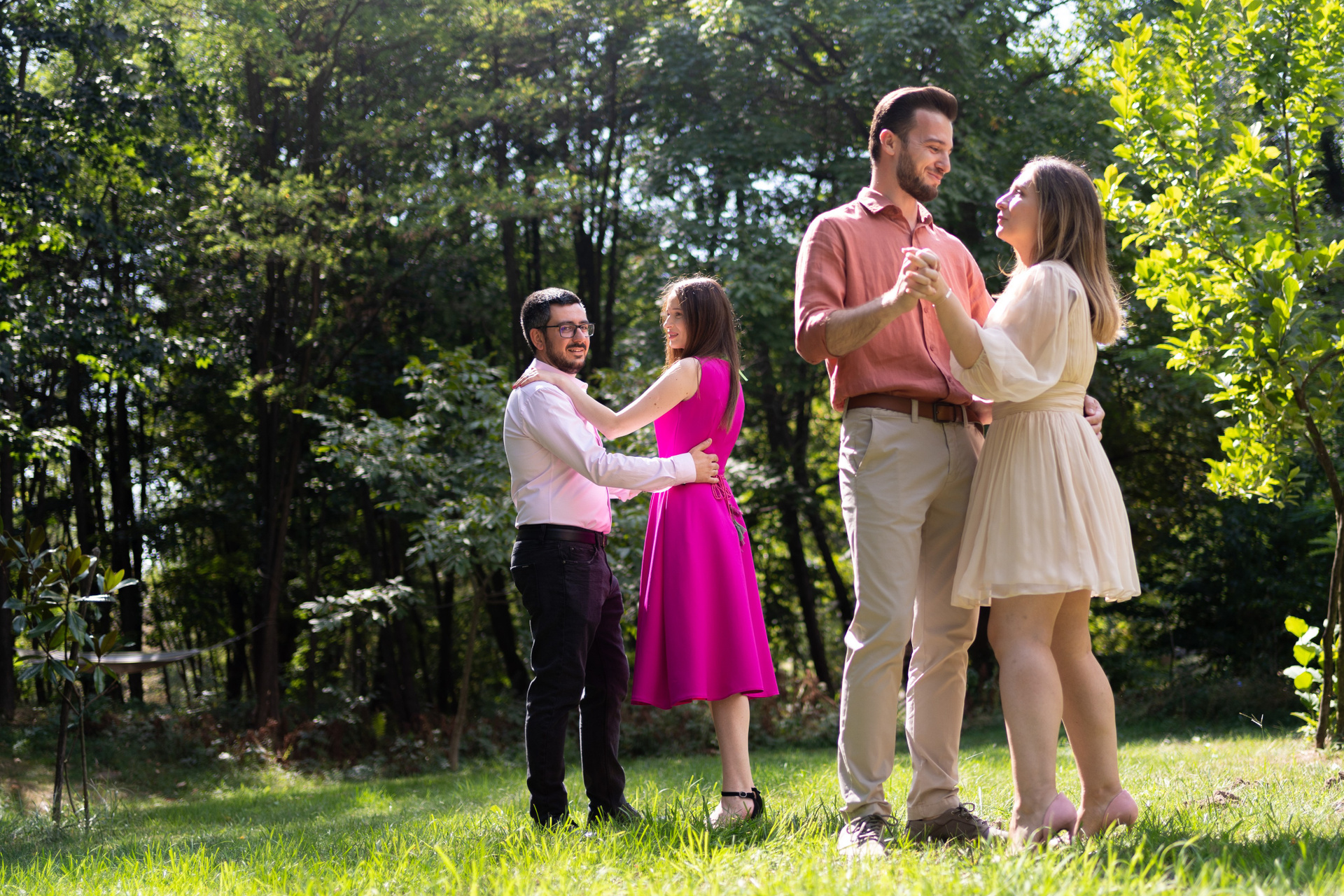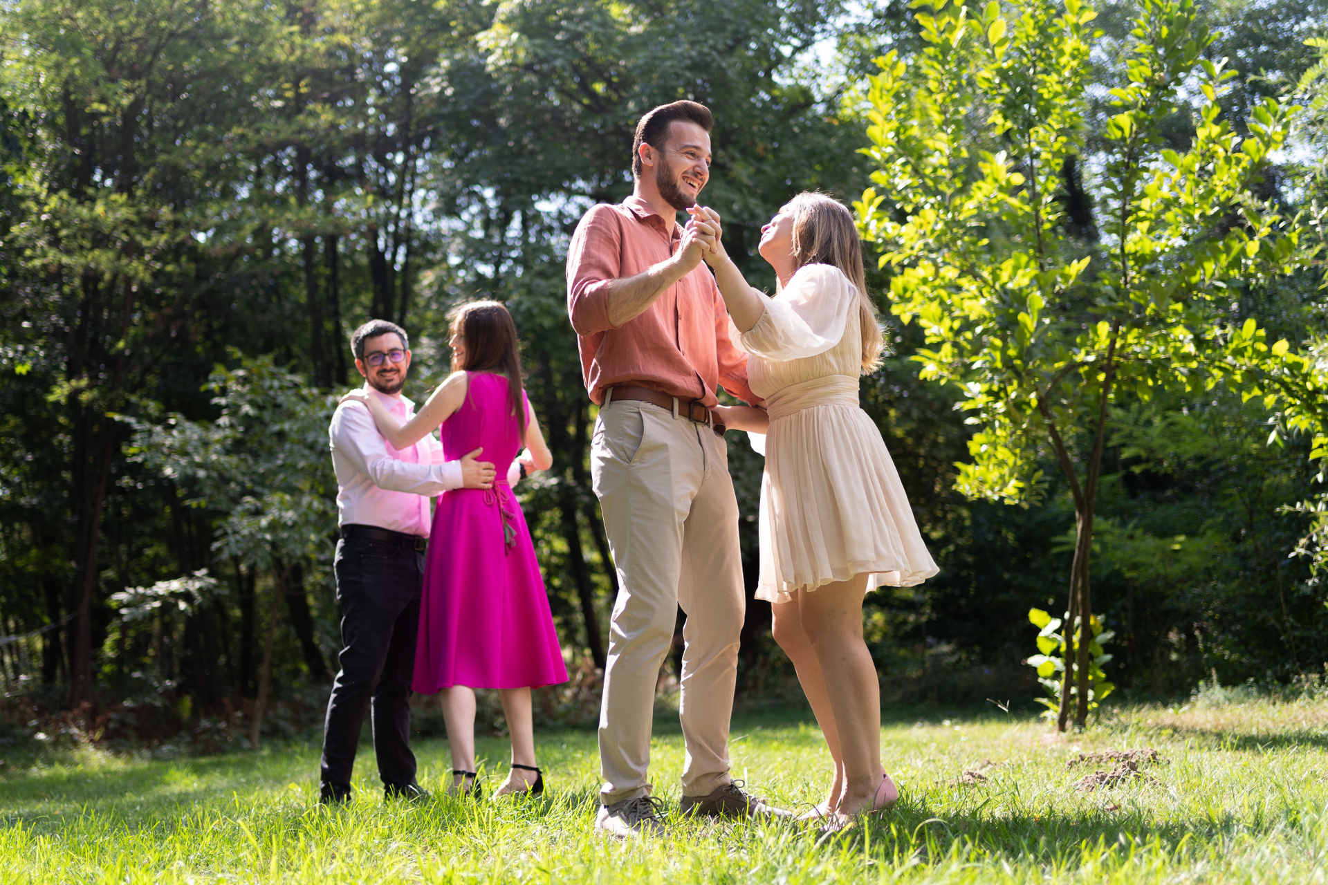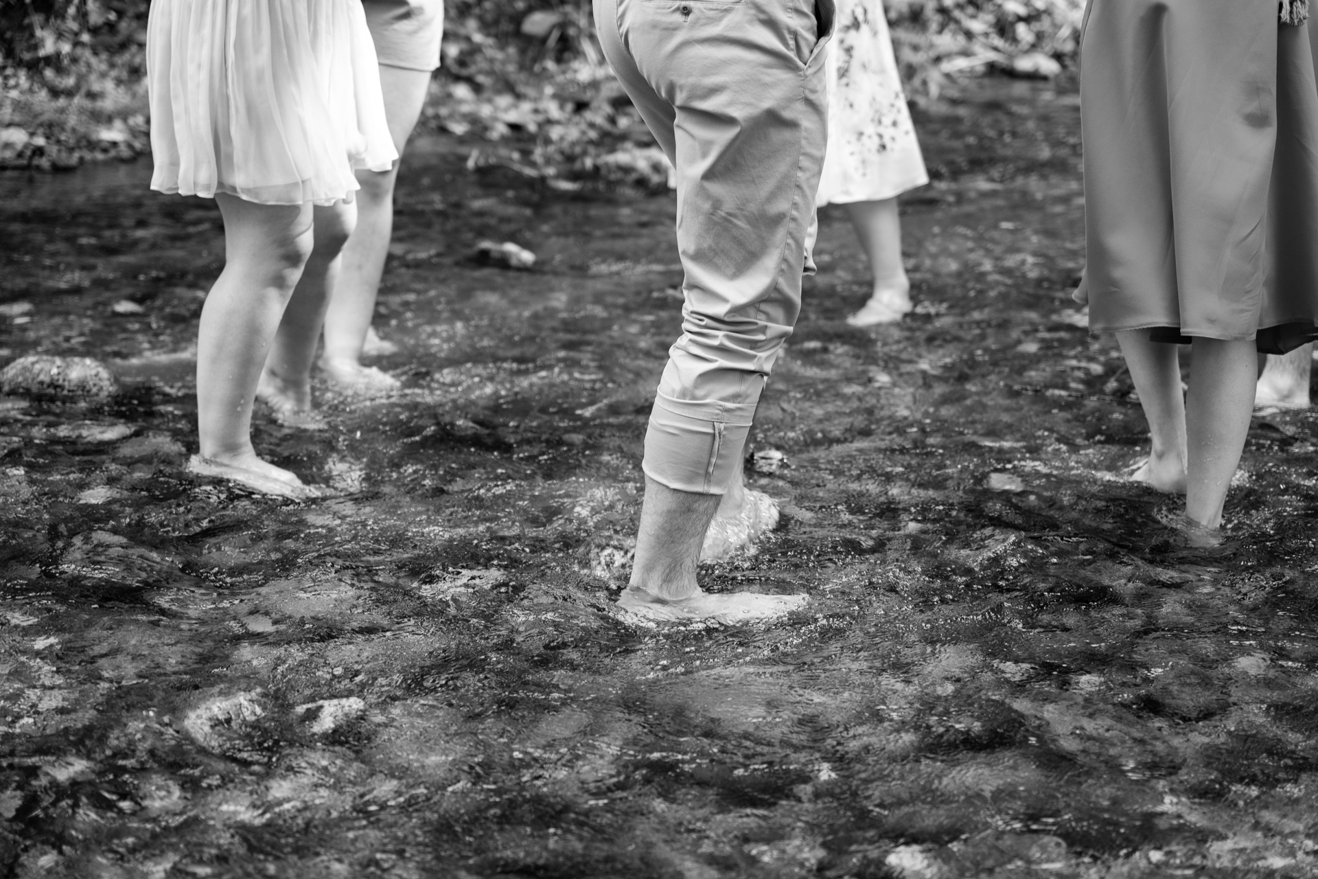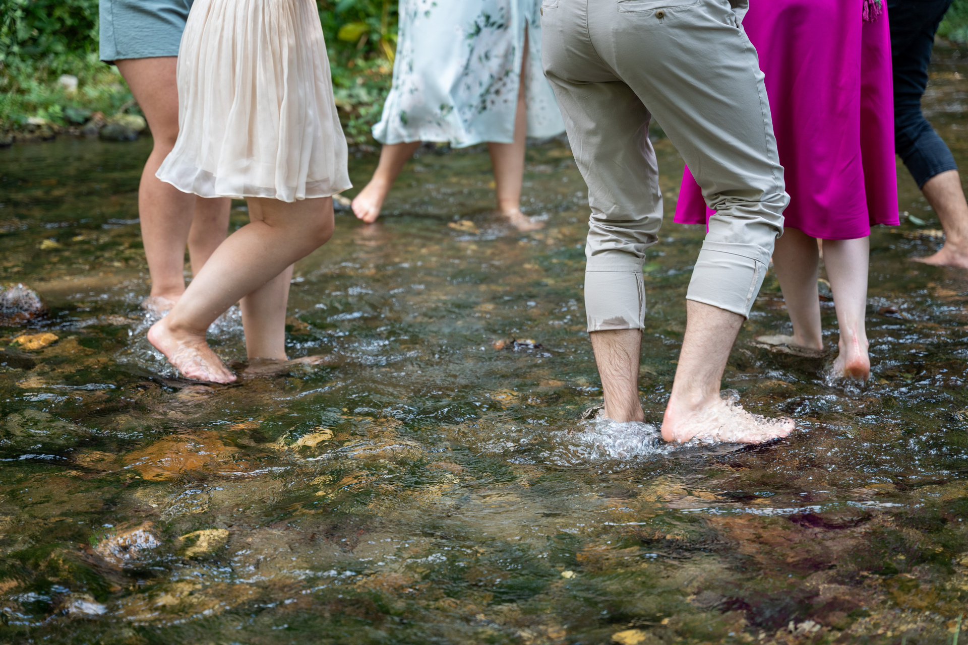 Unul dintre cele mai memorabile momente ale zilei a fost dansul lor spontan în apă. Cu pantofii în mână și picioarele goale în apa cristalină, cei doi au plutit pe ritmurile iubirii, purtați de sunetul liniștit al râului. Acea clipă a întruchipat perfect esența lor ca și cuplu — libertatea, bucuria și dragostea nemărginită.
