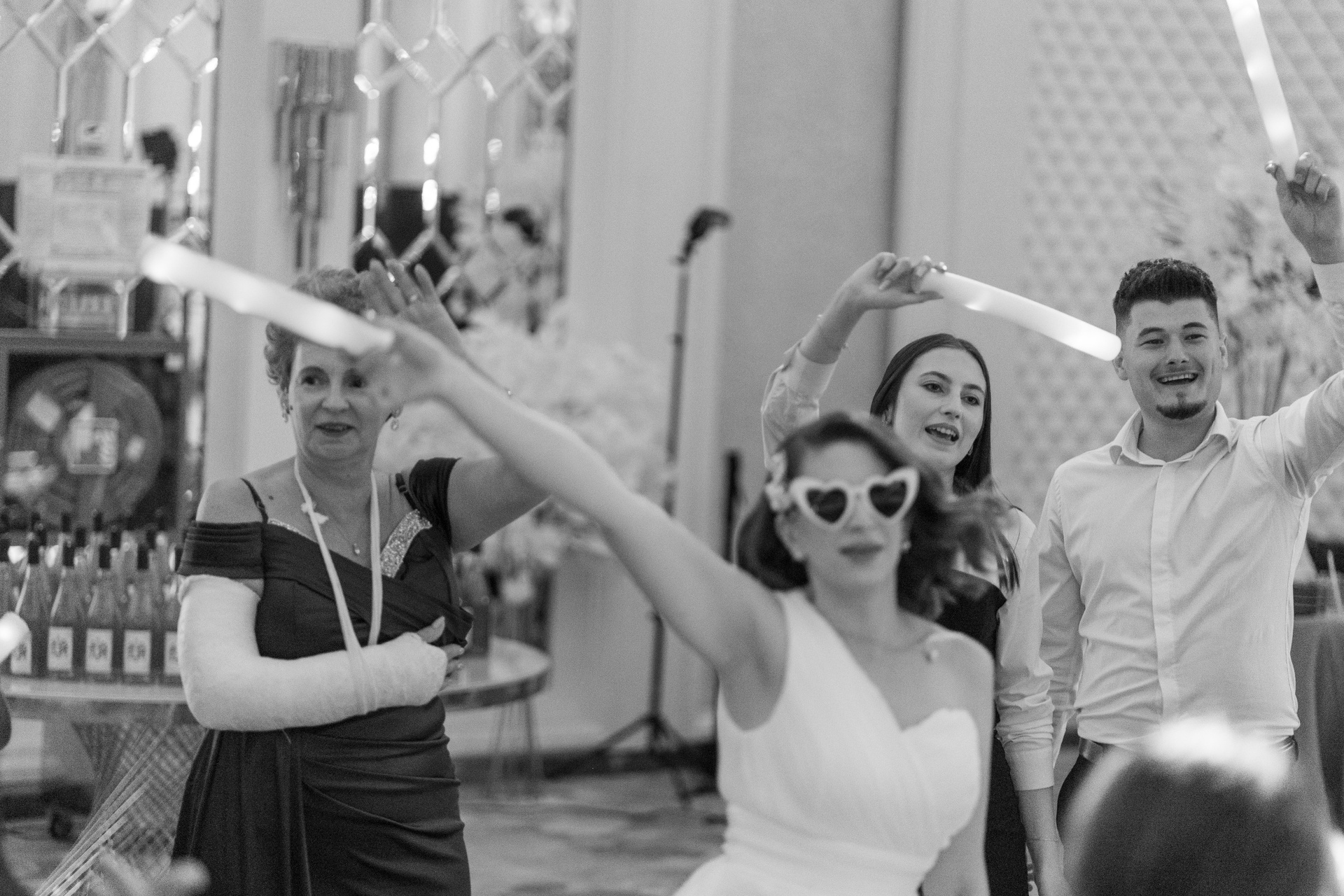 Ceremonia este captată cu atenție: momentele în care își promiteau unul altuia devotament și sprijin sunt surprinse cu sensibilitate, iar reacțiile celor dragi — zâmbete, lacrimi de fericire, aplauze — adaugă profunzime fiecărei imagini. La petrecere, atmosfera vibranta se simte în fiecare cadru — râsete necontrolate, dansuri pline de energie și acele detalii care fac o nuntă cu adevărat memorabilă.