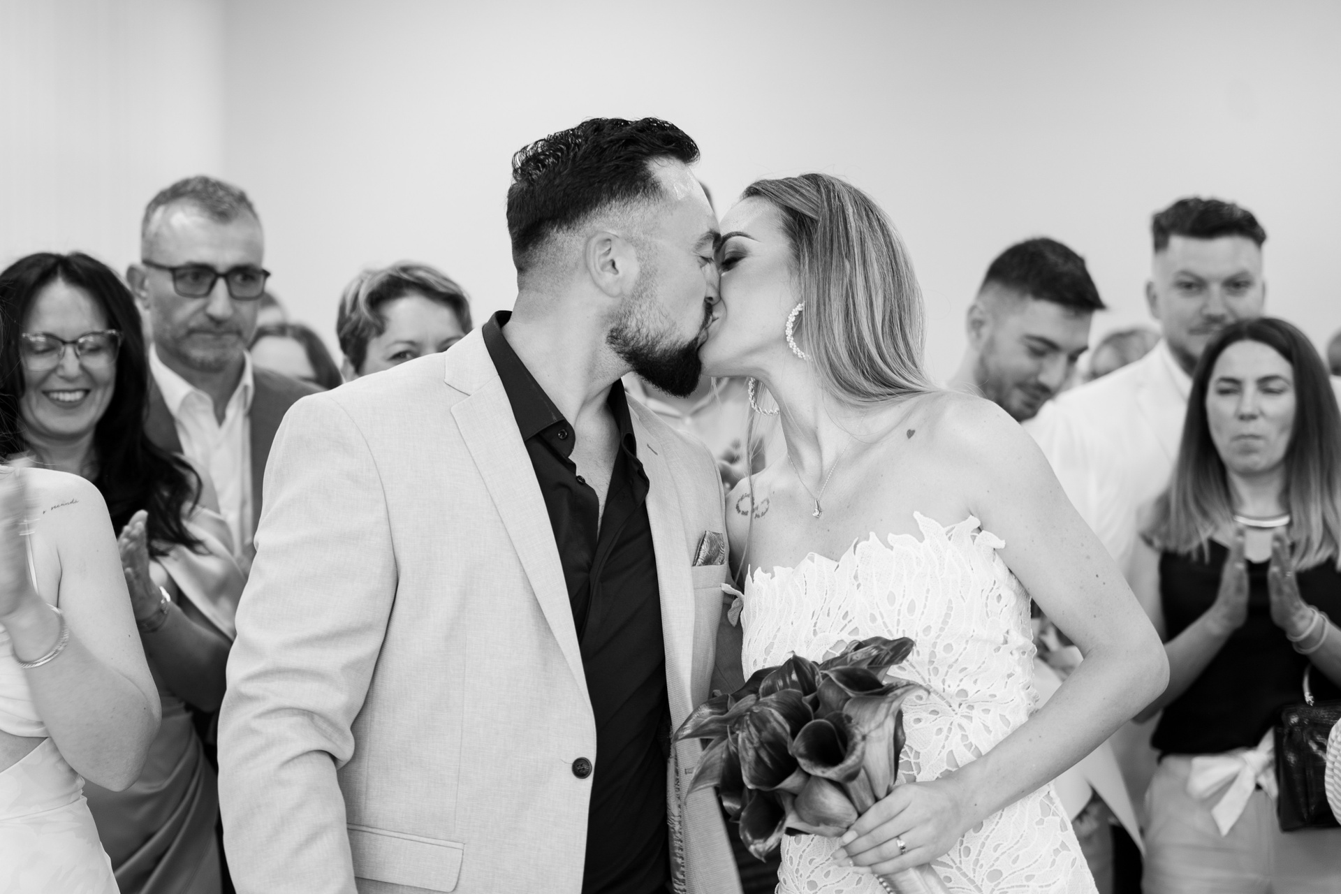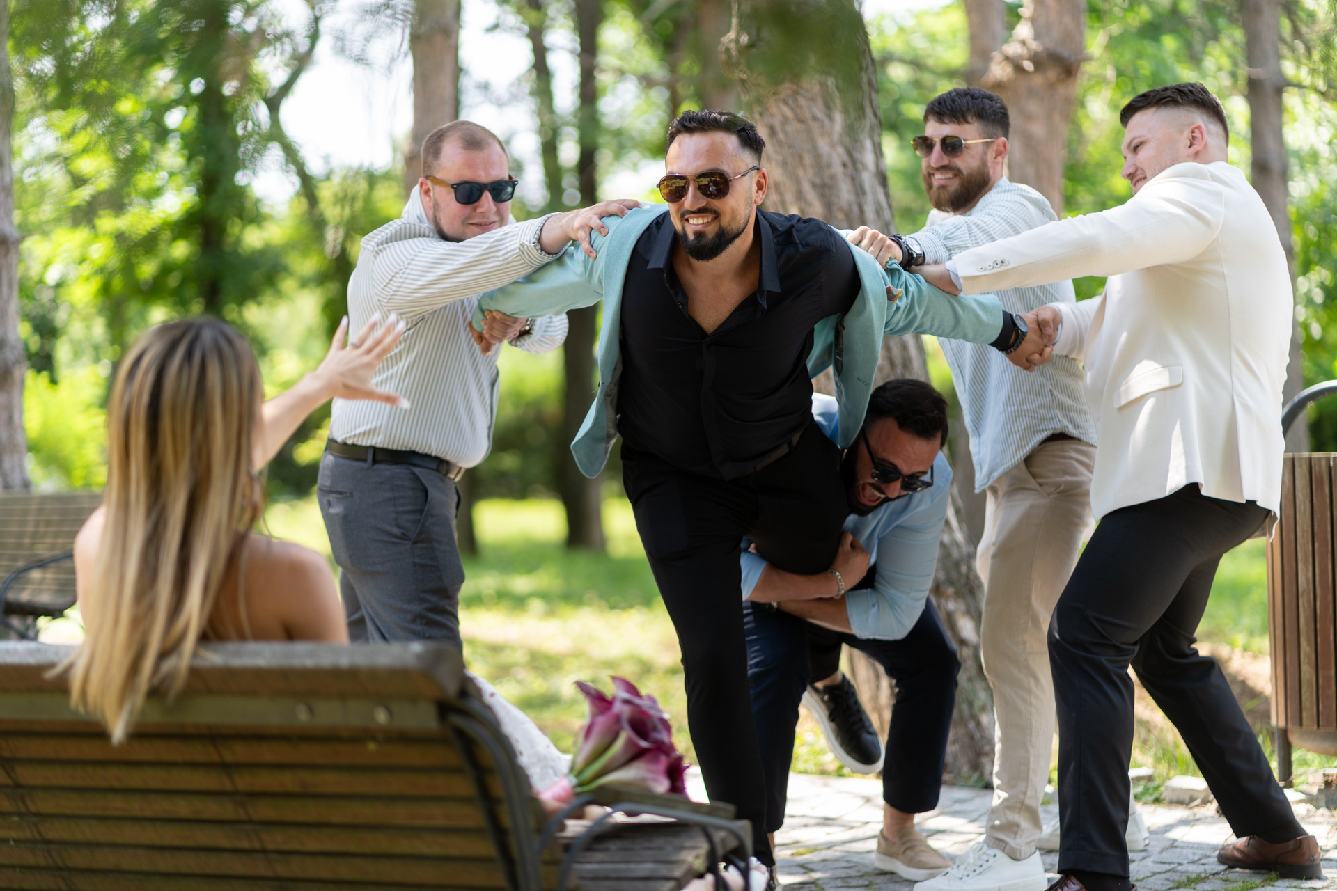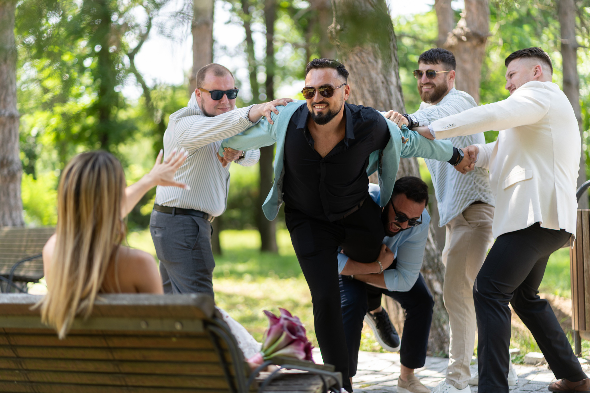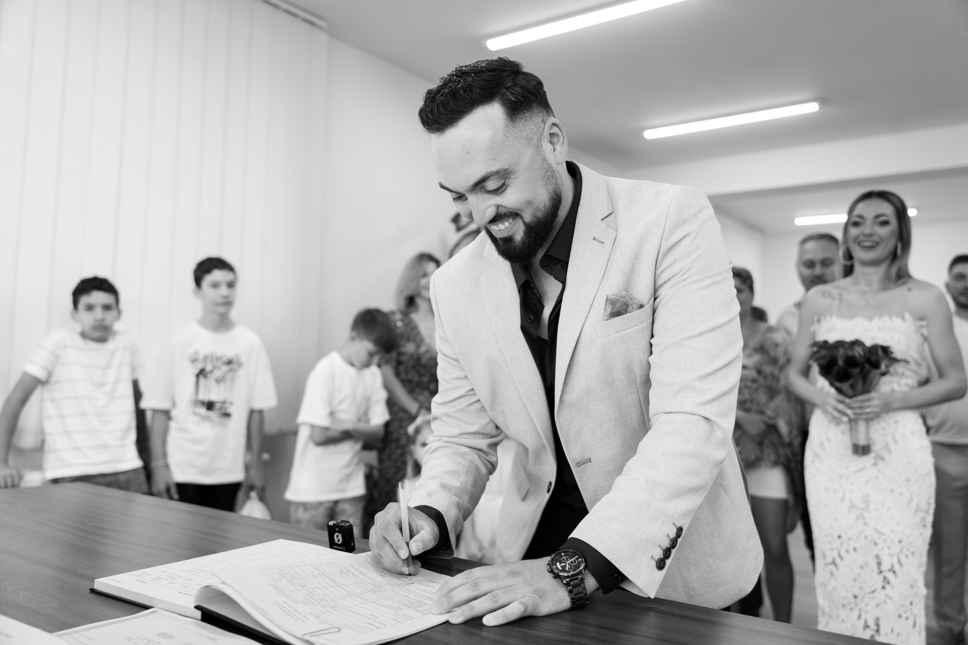 Pe parcursul ceremoniei și al momentelor petrecute împreună, scenele redau o varietate de stări și sentimente: de la emoția discretă a unui zâmbet schimbat între cei doi, la momentele luminoase și pline de viață în care prietenii și familia îi înconjoară cu aplauze și priviri calde. Fiecare fotografie este compusă cu atenție, surprinzând nu doar ceea ce se vede, ci și ceea ce se simte — acele clipe de sinceritate pură, priviri intense și zâmbete care rămân vii în amintire.